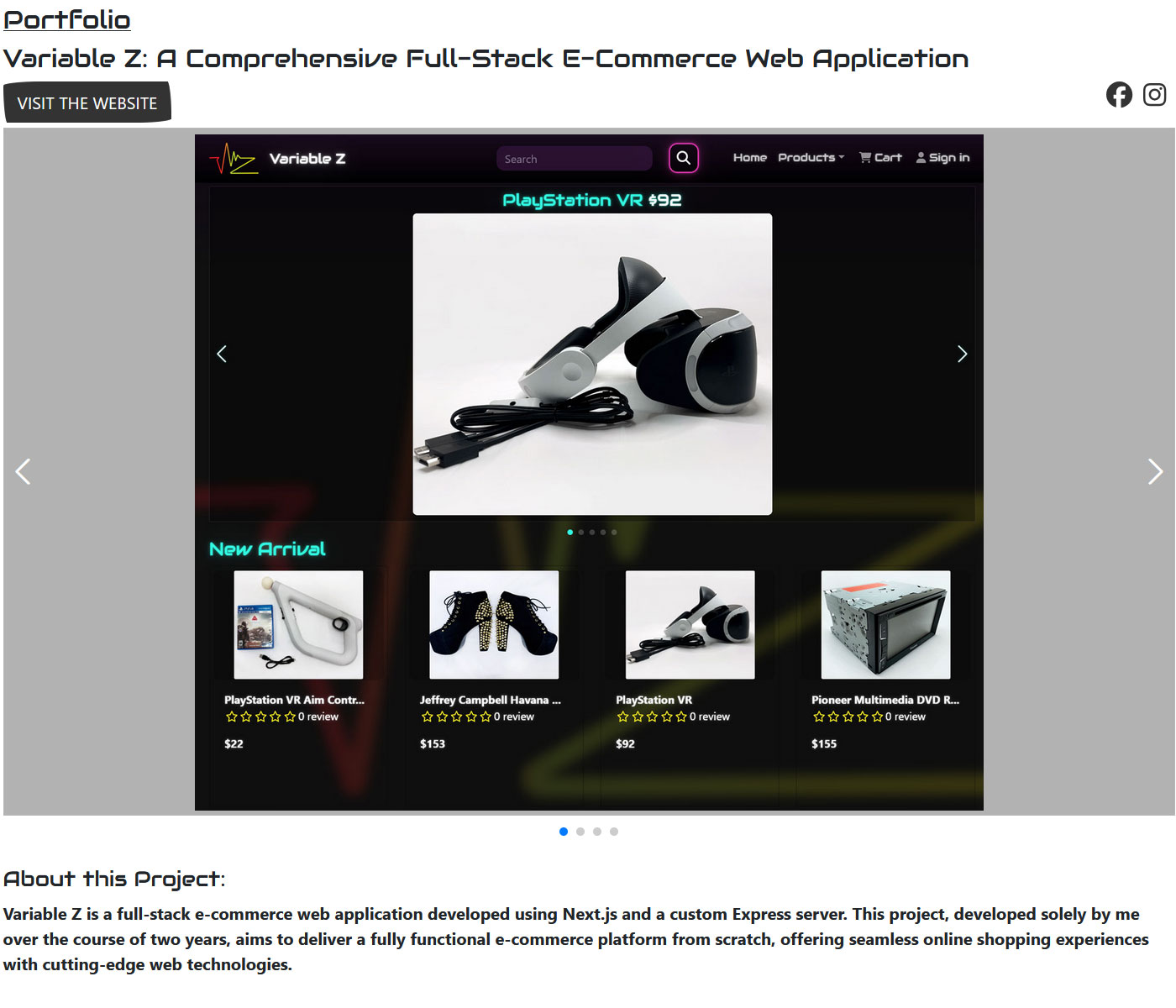 Variable Z is a full-stack e-commerce web application developed using Next.js and a custom Express server. This project, developed solely by me over the course of two years, aims to deliver a fully functional e-commerce platform from scratch, offering seamless online shopping experiences with cutting-edge web technologies.